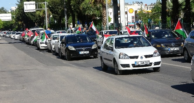 Filistin bayrağı taşıyan bir grup, Yeni otogar önünde bir araya geldi. Araçlarıyla konvoy oluşturan gruptakiler, buradan Altınşehir Mahallesi Küçük Sanayi Sitesine kadar gitti.