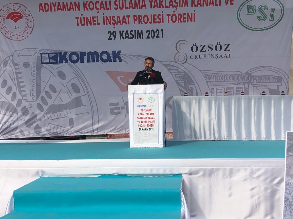 MSK Başkanı Aydın; Koçali Baraj inşaatı, Sulama inşaatı ve Yaklaşım Kanalı ve Tünel Projesi inşaatları süratle devam etmekte olup, topraklarımızın suyla, rahmetle, bereketle kavuşacağı günlerde, Adıyaman’ımız ve ilçelerimizde sulama anlamında tek karış toprak kalmayana kadar çalışmalarımız devam edecektir.
