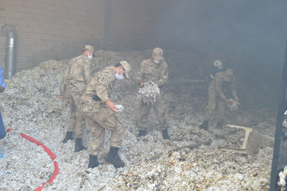 İtfaiye ekipleri, fabrikayı kaplayan ve gökyüzüne yükselen dumanlar nedeniyle yangını müdahale etmekte güçlük çekti. Bir taraftan işçiler diğer taraftan itfaiye ekipleri yangını söndürmek için seferber olurken, olay yerine gelen jandarma ekipleri de söndürme çalışmalarına katıldı. İş makinalarıyla fabrikanın değişik yerlerinden duvarlar delinerek, itfaiye ekiplerinin yangına müdahalesi sağlandı. Yangında dumandan etkilenen kişilere olay yerinde bulunan sağlık ekipleri müdahale etti. Pamuk fabrikasında çıkan yangın kontrol altına alındı ancak, pamuk balyaları içten içe yanmaya devam ediyor.