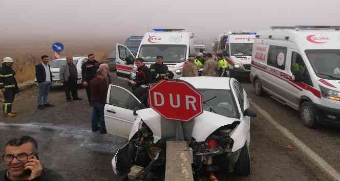 Adıyaman-Şanlıurfa karayolunda yoğun sis nedeniyle otomobil beton bariyerlere çarptı.